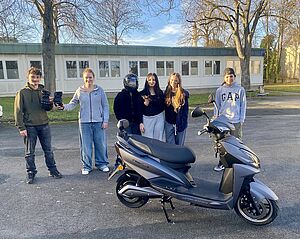 Erstellt von M. Dreyer (Text u. Foto) |mehrDank einer großzügigen Spende des Fördervereins darf sich der Mofa-Kurs unserer Schule über einen neuen Elektroroller freuen.