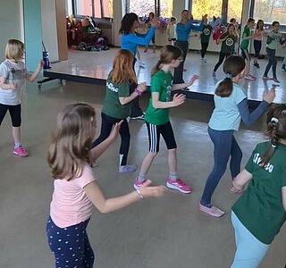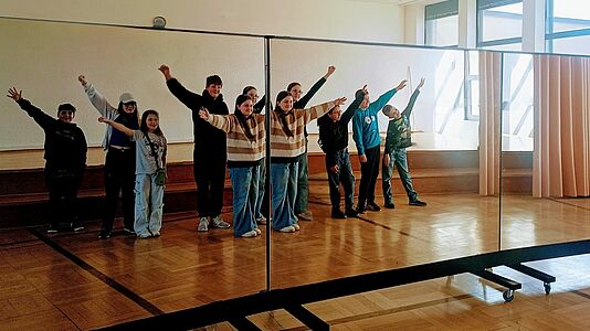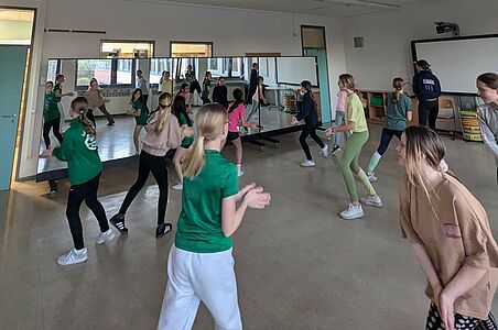 Der DuG-Raum, der in Kooperation mit der DJK Werl ausgestattet und genutzt wird, hat drei große, mobile Spiegelwände bekommen, die sowohl von Schule als auch Verein bereits eifrig genutzt werden.