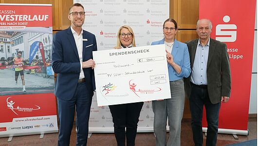 Bei der Übergabe bekam der Förderverein der Sekundarschule 5000 Euro für die Ausstattung des "Darstellen und Gestalten"-Raums. Den Zuschlag für diese Unterstützung gab die "Stiftung Gutes erlaufen", die Gewinne des Silvesterlaufs in Zusammenarbeit mit der Sparkasse Hellweg / Lippe an Projekte von Vereinen vor Ort vergibt.