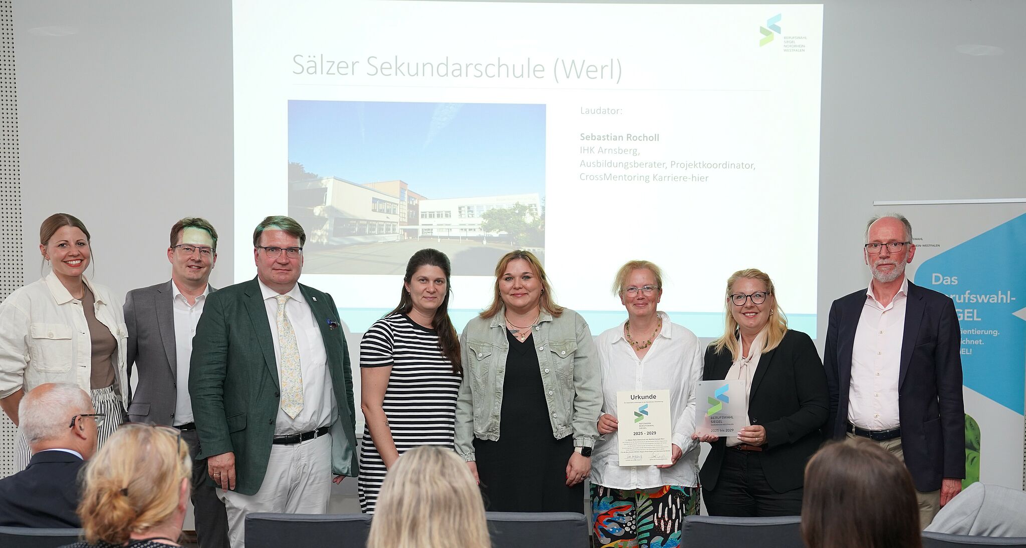 "Was wir als Jury an der Sälzer-Sekundarschule der Wallfahrtsstadt Werl erleben durften, ist nicht weniger als ein Paradebeispiel für gelungene, lebendige und tief verankerte Berufliche Orientierung." Mit diesem Satz eröffnete Projektkoordinator Sebastian Rocholl von der IHK Arnsberg die Laudatio vor den versammelten Vertreterinnen und Vertretern aus Politik, den Kreisverwaltungen und Schulen.