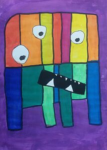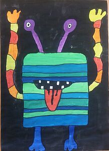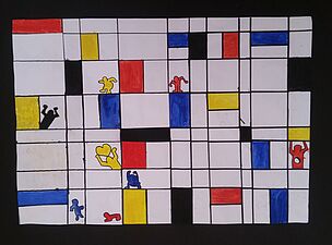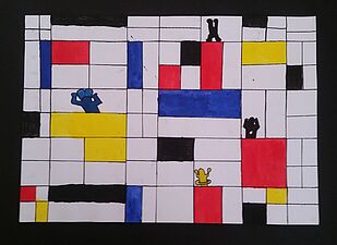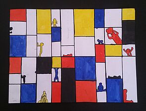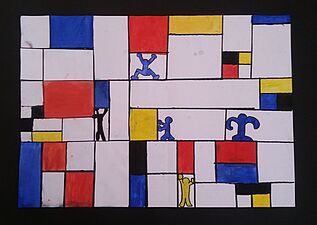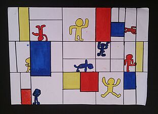 (Wasserfarbarbeit nach den Künstlern Haring und Mondrian)