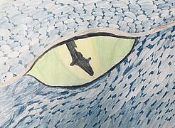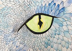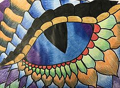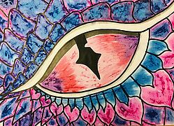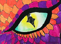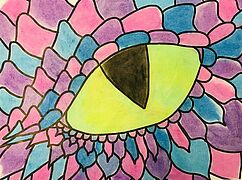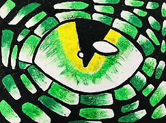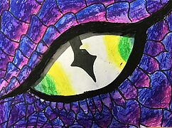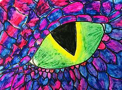 Drachenaugen (Arbeiten mit Jaxonkreiden, Aquarellstiften, Buntstiften, Wasserfarbe)