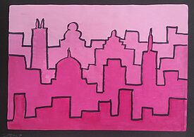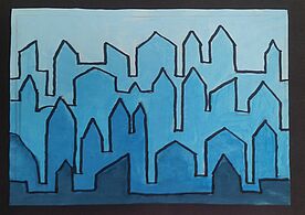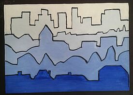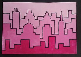 Stilisierte Skyline (Deckfarben mit Farbabstufungen)